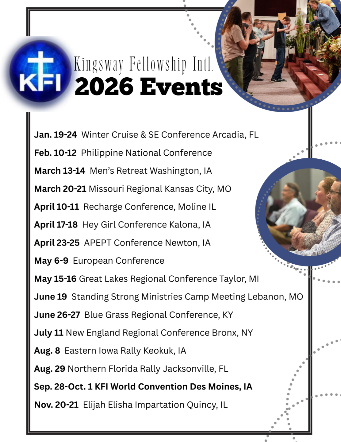 Kingsway Fellowship International invites you to join us for one of these great upcoming events!